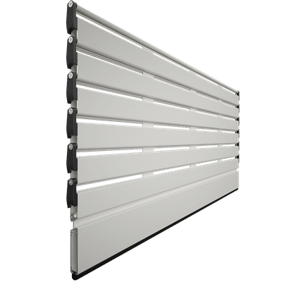 La nueva lama PS-25 R, porta unos mecanizados apaisados de gran longitud que incrementan considerablemente la aireación y la entrada de luz a la estancia, llegando aproximadamente al 12.9% de area libre de aireación en relación a la cobertura del paño, gracias a la posibilidad de mecanizado de toda la longitud de lama, lo cual es posible por el sistema registrado de unión de mecanizados a través de los tapones laterales.