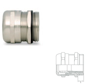Prensaestopas con sistema de cierre con diafragma mejorado y junta interior de NBR, con un índice de protección IP68 (10 bar) según EN 60529 . Disponible en rosca métrica de M12 a M63 y en rosca PG7 a PG48 para diversos diámetros de cable. Fabricado en latón niquelado. Aplicaciones Industriales y especiales.