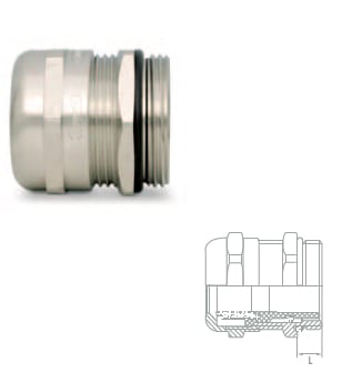 Prensaestopas metálico con sistema de cierre por diafragma mejorado con junta NBR y un índice de protección de IP68 (10 bar) según EN 60529. Disponible en rosca métrica de M12 a M63 y en rosca PG 7 a PG48 para diversos diámetros de cable. Fabricado en latón niquelado. Aplicaciones ATEX con atmósferas explosivas.