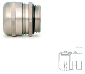 Prensaestopas metálico con sistema de cierre por diafragma con junta NBR y un índice de protección de IP68 (5 bar) según EN 60529. Disponible en rosca métrica de M12 a M63 y en rosca PG 7 a PG48 para diversos diámetros de cable. Certificación UL Classified. Fabricado en latón niquelado.