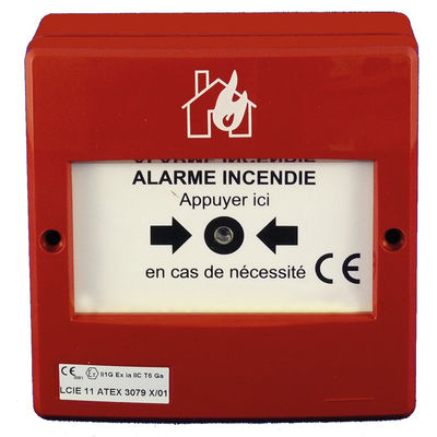 Pulsador de alarma convencional rearmable, versión EX. Certificado ATEX 94/9/CE. EN60079-0, EN60079-1