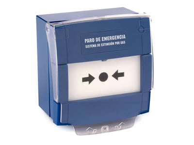 Pulsadores manuales de paro y disparo de sistemas de extinción mediante agentes gaseosos.