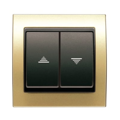 Grupo 2 pulsadores para persianas realizado con pulsador doble persianas con enclav. eléc. dorado de la serie BJC Mega.
