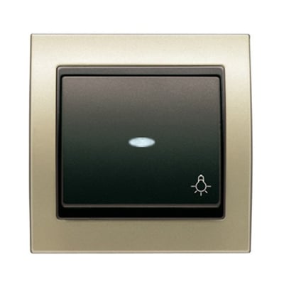 Punto pulsador luz con visor realizado con pulsador luz con visor dorado Malta Cosso de la serie BJC Mega.