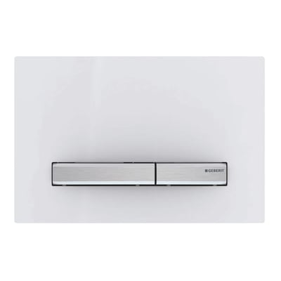 Pulsador Sigma50 de Geberit. Para doble descarga, color metálico cromado: cromado, blanco