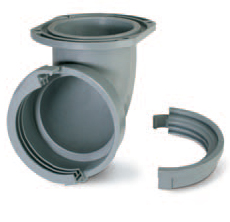 Racor angular 90° con cuerpo giratorio y anillo de fijación a superficie de Poliamida 6 autoextinguible, libre de halógenos en color gris RAL 7011 y en color negro RAL 9005. Disponible en varios diámetros. Conexión que permite el giro, pero no su desplazamiento axial. Adecuado para los tubos flexibles de gran diámetro Macroflex®.