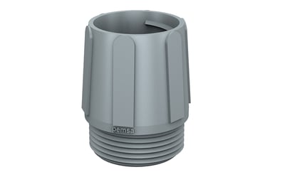 Racor recto básico de poliamida 6 autoextinguible libre de halógenos para montaje de tubos plásticos flexibles y helicoidales. Índice de protección IP65. Disponible en rosca métrica y PG para diversas medidas de tubo