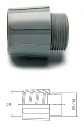 Racor recto básico de poliamida 6 autoextinguible libre de halógenos para montaje de tubos plásticos flexibles y helicoidales. Índice de protección IP44. Disponible en rosca métrica y PG para diversas medidas de tubo, en color GRIS RAL 7001.