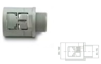 Racor recto de poliamida 6 autoextinguible en color gris RAL 7011 o en color negro RAL 9005 con rosca exterior métrica y Pg, libre de halógenos, no propagador de la llama, índice de protección IP54 o IP67 con junta interior adicional. El racor REP de Pemsaflex® está indicado para el montaje de tubos flexibles Pemsaflex® LG-PA, ST-PA, RF-PA, RB-PA y RB-PU.