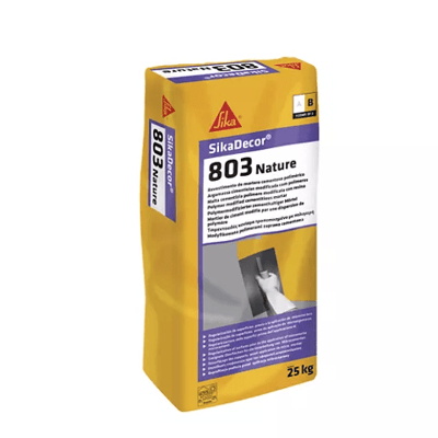 El SikaDecor®-803 Nature es un revestimiento de dos componentes formulado a base de cemento Portland, áridos seleccionados, aditivos y resinas sintéticas, de altas prestaciones para regularización de superficies antes de la aplicación de microcementos decorativos.