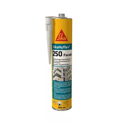 SikaHyflex®-250 Facade es un sellador elástico, de bajo módulo, curado por humedad y monocomponente adecuado para las juntas de conexión y de movimiento en envolventes de edificios comerciales.