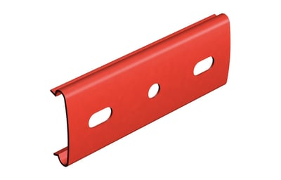Soporte de plástico en color rojo para la rápida instalación de cajas de derivación al ala de las bandejas Rejiband® mediante el sistema Click sin tornillos. Soporte apto para bandejas de altura 60 y 100 mm.