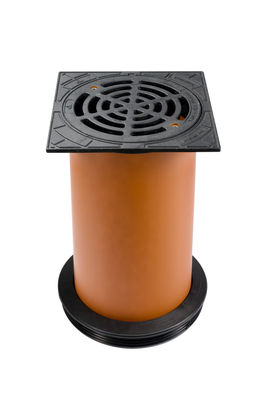 Tapa con rejilla de entrada cuadrada y prolongador telescópico de PVC DN/OD 315 con junta de unión Ostendorf/Crearplast-Sistema S400, teja, 385 mm x 385 mm