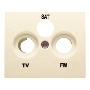 Tapa para tomas R/TV-SAT de 3 salidas, referencia 18341-A de las series Iris y Mega de BJC. Blanco