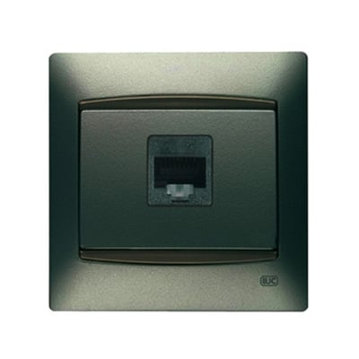 Toma RJ45 de voz / datos con 8 vías realizada con toma RJ45 8 vías cat. 6 gris Lava de la serie BJC Coral.