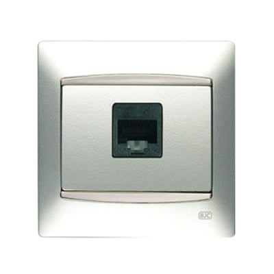 Toma RJ45 de voz / datos con 8 vías realizada con toma RJ45 8 vías cat. 6 plata Luna de la serie BJC Coral.