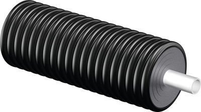 Tubería para canalización de agua de calefacción, marca Uponor, modelo ECOFLEX Thermo Single, de polietileno reticulado de alta densidad (PEX-a), con reticulación conforme al método Engel (grado de reticulación >70%), de 40 mm de diámetro exterior y 3,7 mm de espesor de pared y cumpliendo la norma UNE EN ISO 15875, con barrera plástica externa Eval (etilvinil-alcohol) antidifusión de oxígeno, según norma EN 1264-4, preaislada térmicamente con espuma de PE reticulado de celda cerrada de 55 mm de espesor, conductividad térmica 0,0401 W/m·K según DIN 52612 y absorción de agua < 1% por volumen y protección mecánica con tubo envolvente corrugado de PE-HD de 175 mm de diámetro y 2,1 mm de espesor, pérdidas de calor controladas por DIN Certco, para una temperatura de funcionamiento de 80 °C (máximo 95 °C) a 6 bar. Medida la longitud instalada. Cód.1018111