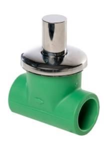 Válvula de cierre (con regulación oculta) PP-R 100, referencia P-244025-RO de la serie helisystem® de Heliroma. Medida: 25 mm. Soldadura termofusión - socket